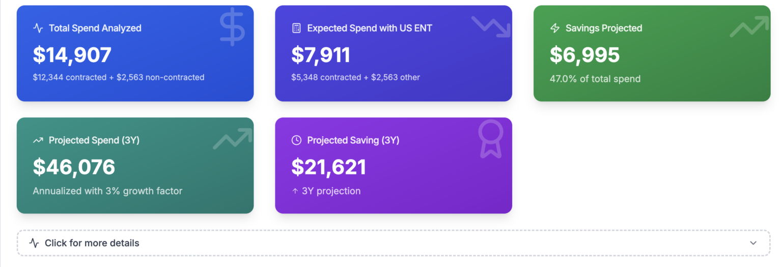 Healthcare purchasing data is messy. Savings opportunities shouldn’t be. Our cost savings tool analyzes your real invoice data across Allergy, MedSurg, Sinus & Sleep, and more to identify clear, defensible cost-saving opportunities, without changing how you buy today.